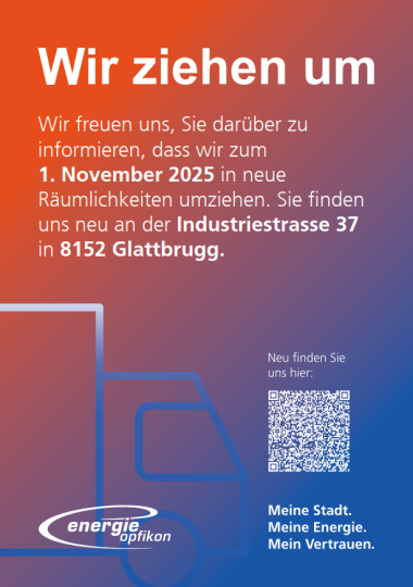 Der Umzug beginnt am 1. November 2025. Deshalb bleibt unser Schalter vom 3. bis 7. November geschlossen. Ab Montag, 10. November 2025, sind wir am neuen Standort wieder wie gewohnt für Sie da.